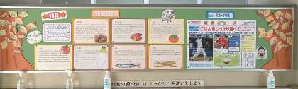 給食室前の掲示板が10月の掲示になっています。給食当番以外の人も休み時間に見てくださいね。