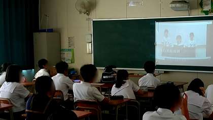 学級教室で、立候補演説、応援演説を視聴し、選挙を行いました。生徒会のために立候補した生徒のみなさんをしっかりサポートしましょう。
