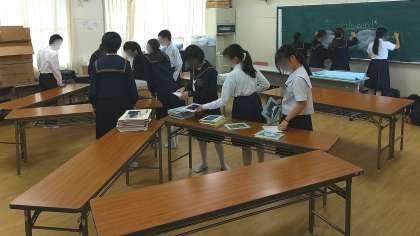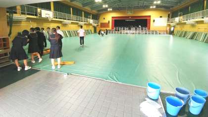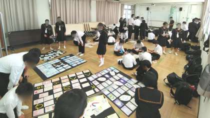 展示発表会場も舞台発表会場も力を合わせて設営します。管理作業員さんも手伝ってくださいました。この後は、リハーサルです。明日が楽しみです。