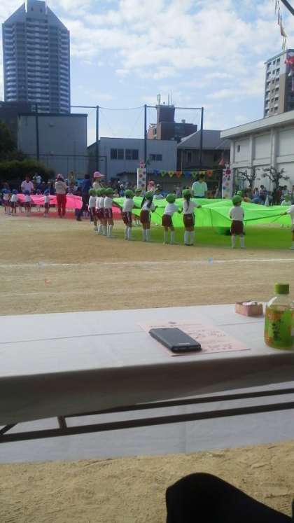 素晴らしい青空の下、鶴見幼稚園の運動会がはじまりました。