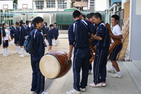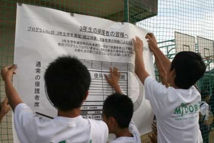 生徒らは早朝7時を過ぎるとグランドに集まりだし、体育大会開始準備を始めだしました。