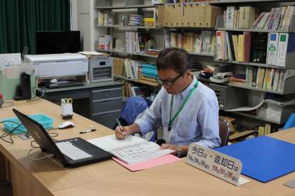 本日から毎週火曜日に、学校図書館補助員の宮本雄一郎さんが来られています。
