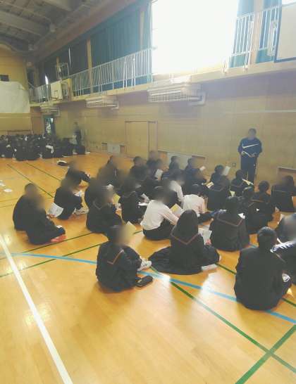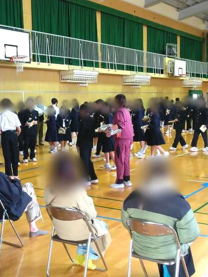 参観授業最終日のきょう、体育館では2年生が、明日実施予定のキャリア教育を目的とした校外学習の前日取組を公開しました。訪れる施設毎にわかれて打合せです。