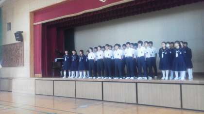 2年生が合唱コンクールのリハーサルを、体育館で交代で行っています。
