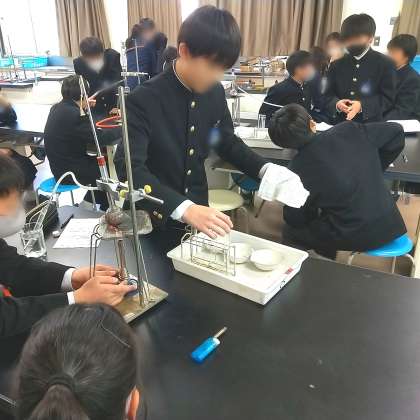 理科室で、赤ワインからアルコールを抽出するための蒸留実験を行っていました。