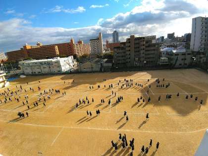 2年の学年休業と3年の学年末テストのために、午後からは、1年のみになりました。球技大会の練習を目的にドッジボールを運動場で行いました。日差しがあって暖かになりました。
