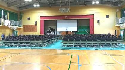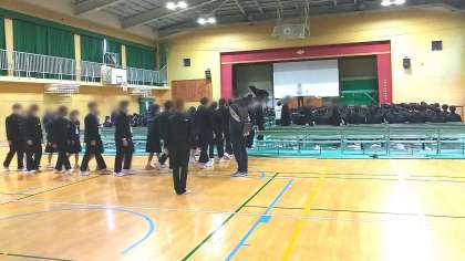 きょうから体育館での練習が始まりました。入退場の練習や、式の流れを確認しています。この後は、合唱の練習をするようです。3年間の集大成であり義務教育9年間の集大成としての卒業式で、生徒たちの雄姿を披露できればと思います。