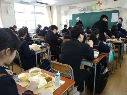 3年生の感想は、「コチジャンいためは、甘辛い味付けが若者向きでおいしい」「さけと枝豆は色もきれいで味もよかった」「のりで巻くことで、香ばしい磯の香りも味わえてよかった」異口同音に『おいしい〜!』でした。