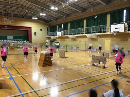 女子は「季節外れの雪合戦」、男子は「タグラグビー」を行いました。レクを通して交流をはかりました。