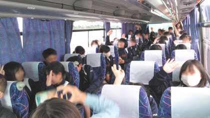 3号車では、バスレクが始まりました。マルバツクイズの様子です。