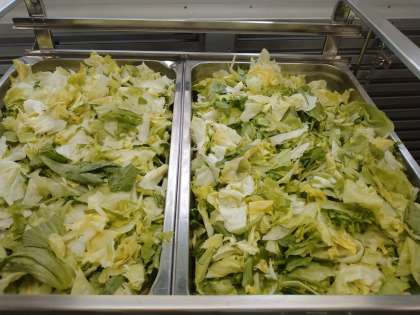生で食べることが多いレタスですが、給食では衛生面から加熱して使います。今日は蒸した後、コーンと合わせて味付けしたサラダにしました。加熱してもシャリシャリとした歯ごたえが楽しめます。