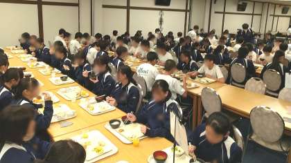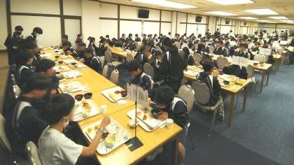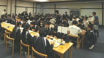 6時30分から時間差をつけて朝食会場に向かいます。ラフティングに備えてしっかりいただきます。