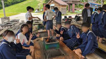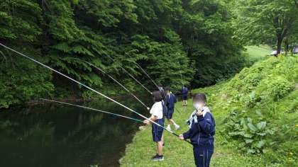 選択体験の魚釣りです。釣ったあとは自分でさばきます。