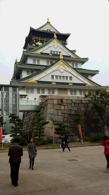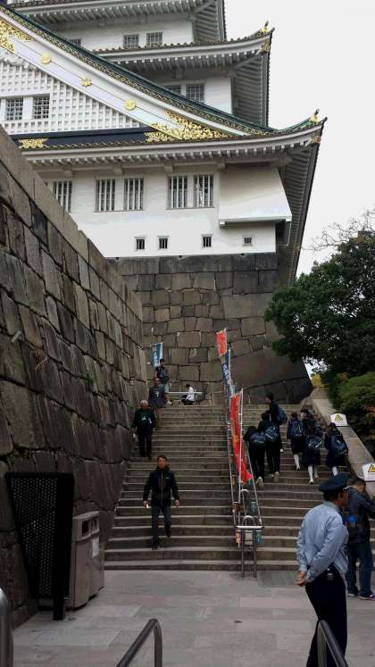 写真は大阪城です。観光の人や修学旅行生でとても賑わっています。