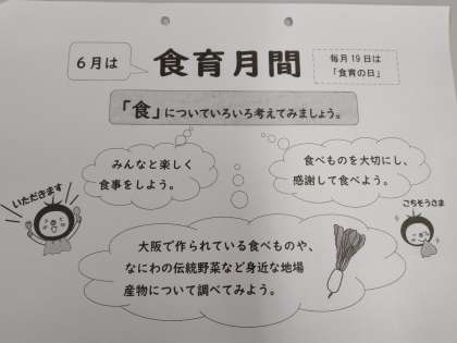 今日から6月…6月は「食育月間」です。食べることについて考える一か月にしましょう。