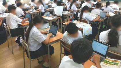 1時間目に続き、スクールアドバイザーの先生に参観いただきました。アジア州での農業についての授業では、タブレット端末で小麦生産国での小麦を使った料理にどんなものがあるかを調べ発表しました。