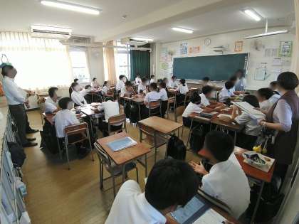 技術・家庭科の授業で、近隣中学校の先生方が数名参観されました。