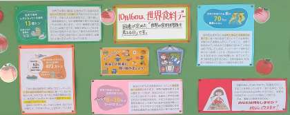 給食調理室前掲示板に貼られています。食品ロスの問題を改善するために、私たちができることは何でしょうか。