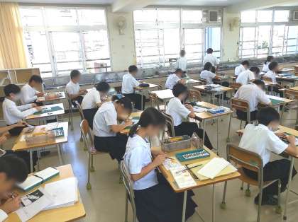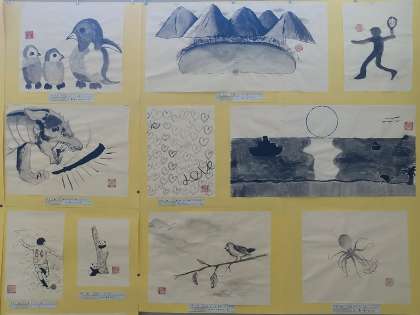 1年生が進捗により、各々制作に励んでいました。廊下や階段踊り場には、来週末の文化発表会に向けた展示作品の掲示が進められています。