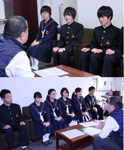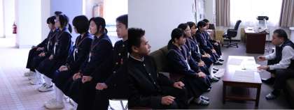 緊張した面持ちで、校長室をノックして、部屋に入ってきます。