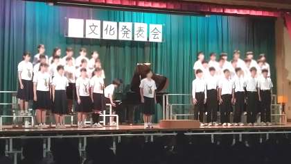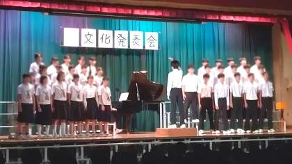 先週金曜日(10月25日)開催されました。写真は、先日の合唱コンクールで入賞した2年生の代表クラスの発表のようすです。