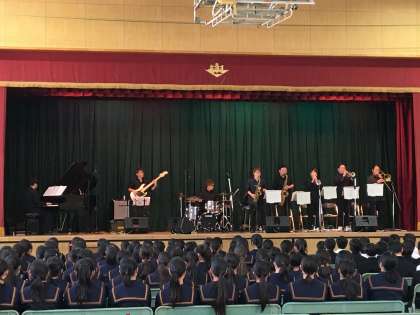本日は芸術鑑賞でジャズの生演奏を楽しみました。名曲から映画・アニメまで90分間で多くの曲を聞かせてくれました。特別ゲストの参加もあり、大いに盛り上がりました。