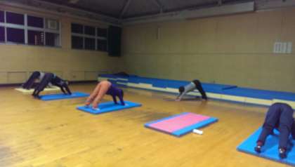 寒い中、5名の参加者と共に背中、肩を伸ばすポーズを中心に行いました。