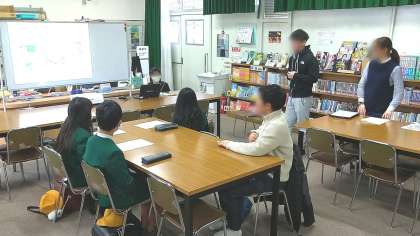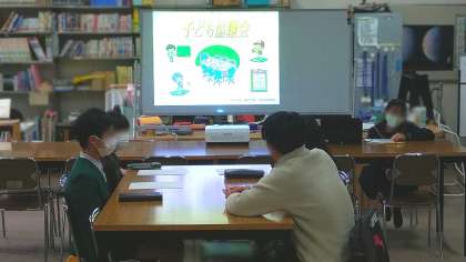 きょうは、みどり小学校の児童会のみなさんが来てくれました。事前にもらっていた質問に答えていくかたちで協議会が進みました。かつて児童の立場で協議会に参加した経験がある先輩が回答しています。