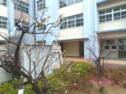 中庭の白梅もようやく咲き始めました。昨年は、私立高校入試の頃に咲き始めていましたので三週間ほど遅いですね。これから見事な花をたくさん咲かせてくれることでしょう。