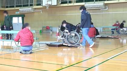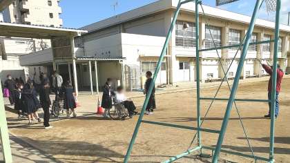 先週末(3月7日)大阪市立心身障がい者リハビリテーションセンターから講師の方々に来ていただき開催しました。(大量の車イスも貸し出してくださいました)屋外での介助体験も良い経験となりました。