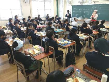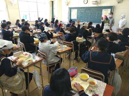 おいしく食べているか給食調理員さんも様子を見に来てくれました。
