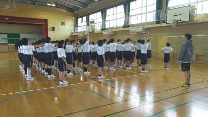 保健体育科で8列横隊など集団行動の練習をしていました。