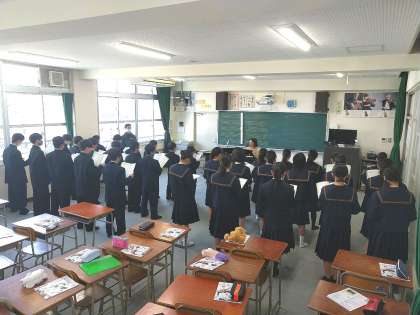 音楽室では、1年生が合唱練習をしていました。しっかり声が出ていました。