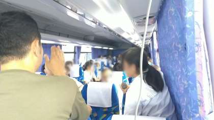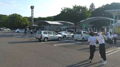 バス内は、給食おかわり券争奪バスレクが盛り上がりながら、ホテルまでの最後の休憩は、長良川SAです。予定より15分ほど遅れています。