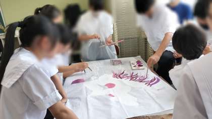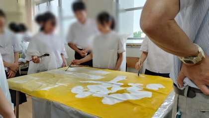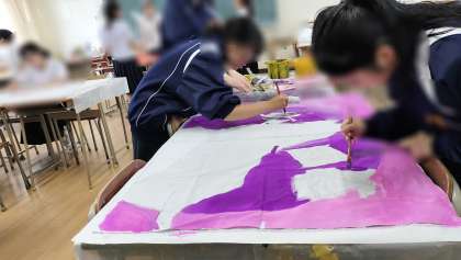 来週末に行われる体育大会に向けて、学級旗を放課後作成しています。
