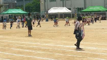 地域連携の一環として今年度も近隣の保育園から園児が来て「がんばれー」と声援をおくってくれました。