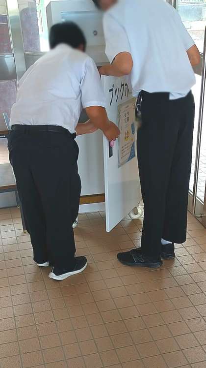 昼休みの時間に、係生徒が返却図書の回収に来ていました。