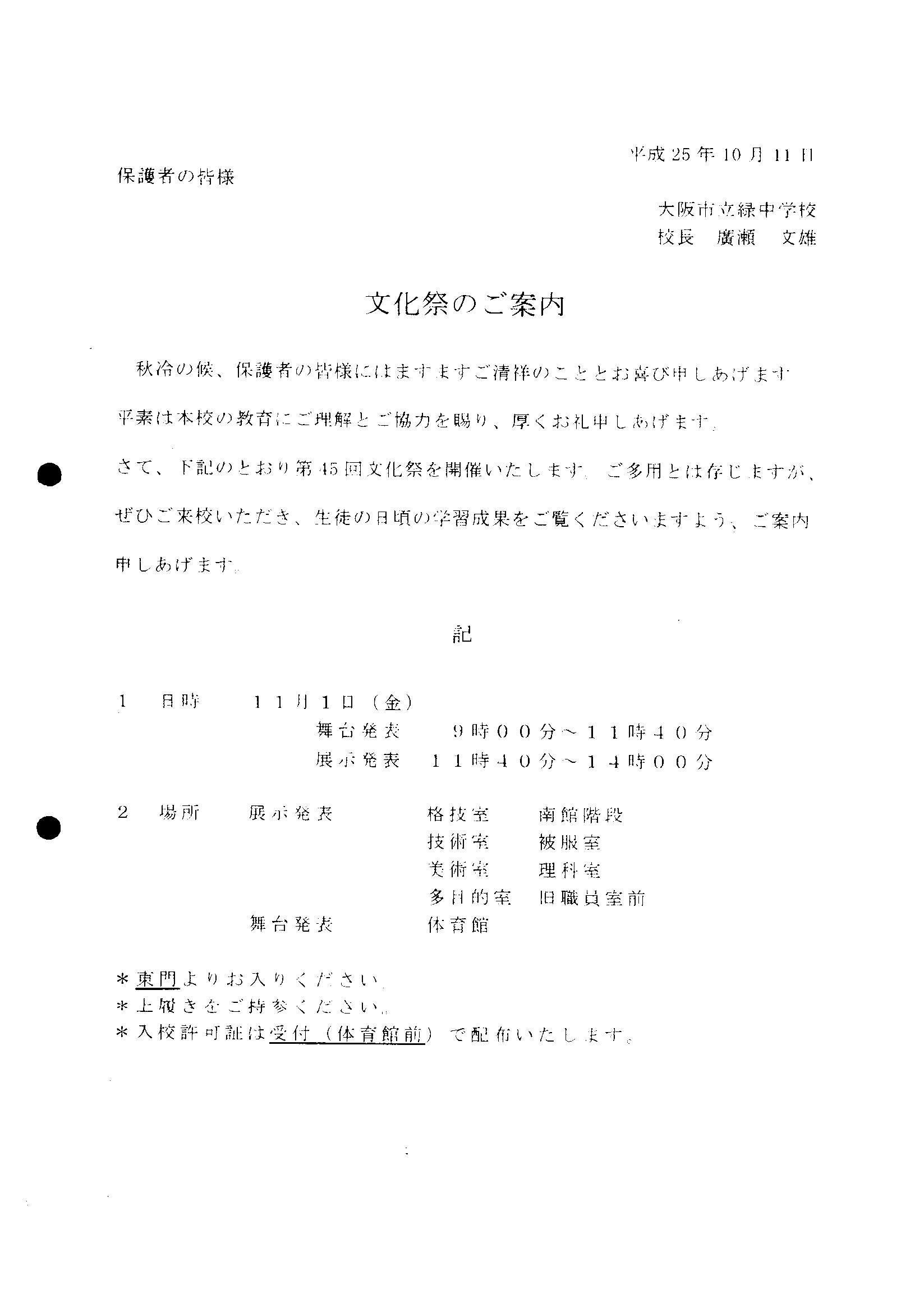 第45回文化祭を開催いたします。ご多用とは存じますが、ぜひご来校いただき、生徒の日頃の学習成果をご覧くださいますようご案内申し上げます。