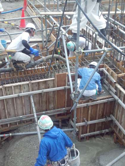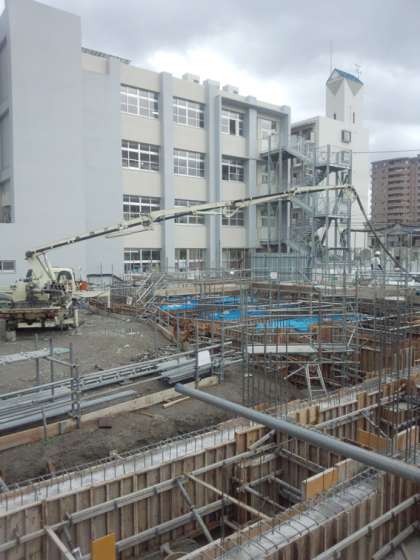 10月16日に南棟の基礎地中梁コンクリートを打設しました。