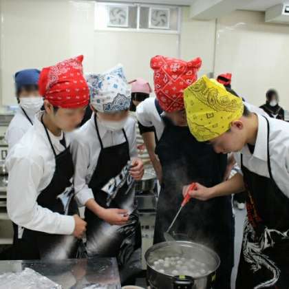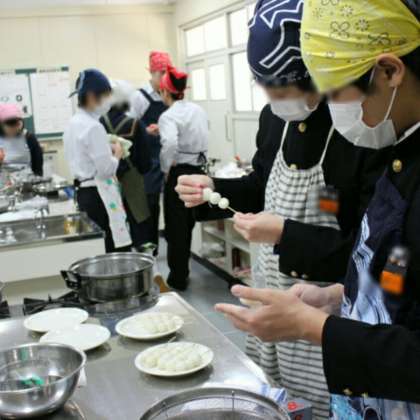 役割を分担し、協力し合って美味しいお団子の完成を目指します。どの班も男女和気あいあいとサポートしあっていたのが印象的でした。
