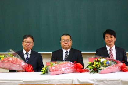 PTA役員と教職員合同で行われた着任式・離任式では、PTAの役員の方々から花束の贈呈がありました。