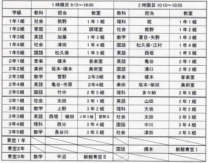 ・進路説明会は体育館で、公開授業の教室は以下の表を参照ください。