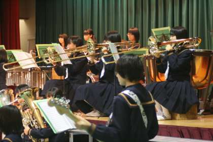 文化祭、最初のステージは吹奏楽部です。「あまちゃん」「恋するフォーチュンクッキー」など、アップテンポで旬なナンバーを響かせ会場を盛り上げてくれました!
