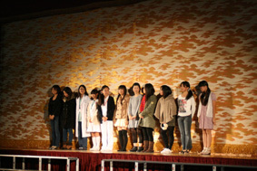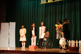 演劇部の生徒らによる創作劇です。美術、照明だけでなく、脚本や演出も生徒ら自身で手掛けてきました。この作品は今月の16日に、こども文化センターで行われる秋の演劇祭でも上演されます。観客の生徒らは、普段と違うステージ上でのクラスメートに見入っていました!