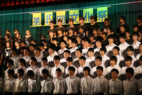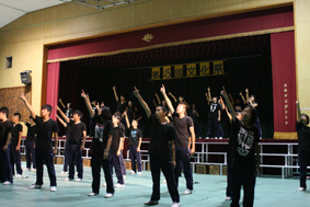 3年生は被災地のことを想い、ダンスと歌を発表しました。震災復興支援ソングであるEXILEの「Rising Sun」を踊り、嵐の「ふるさと」を合唱します。