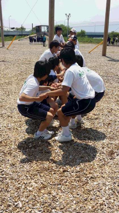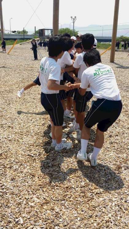 みんなで力を合わせて何とか立てました。