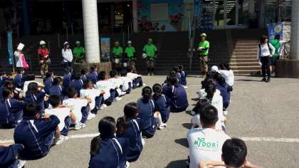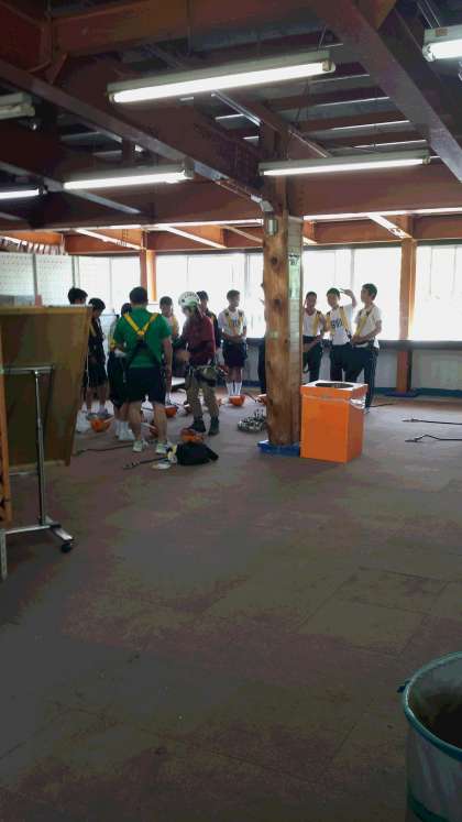 こちらはジップラインの様子です。体につける器具の説明を受けています。