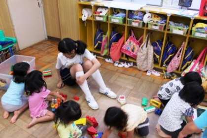 保育園や幼稚園に着くたびに、普段は生徒のみなさんが「○○先生!」と呼ばれながらイキイキと園児たちと一緒に活動する様子が飛び込んできました。園児たちの無尽蔵のエネルギーを前に、お兄ちゃん先生やお姉ちゃん先生たちが全力で応えておりました。さすがに最後は疲れた様子でした。