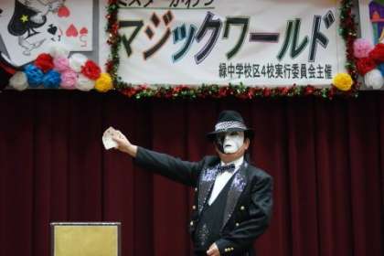 昨日、日曜日は緑中学校区4校PTA実行委員会主催「おやこで体験 マジックワールド」が、みどり小学校で行われました。講師にお招きしたミスターかわづさんは、聴覚障がいを持っておられるマジシャンです。マジックショーやマジック体験だけでなく、手話でのコミュニケーションなども行われました。参加した小中学生や保護者は、マジックショーにくぎ付けです。また、手話であいさつを行うなど、誰でも参加できるなごやかな雰囲気に会場は包まれました。