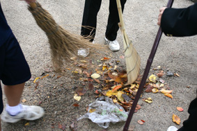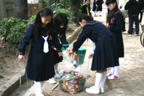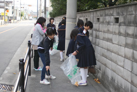 昨日より始まったクリーンウィークに伴い、本日は早朝から校内と敷地周辺のゴミ・落ち葉掃除が行われました。美化委員が中心となり、教職員と有志の生徒が参加しています。冷え込み始めた11月初旬の北風をはねつけるように、箒や熊手を上手に使ってゴミ袋いっぱいの落ち葉をかき集めました。